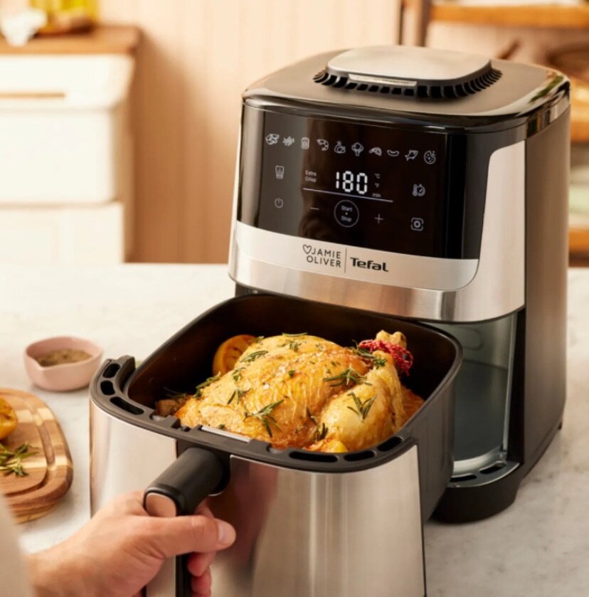 Découvrez la friteuse à air Tefal Jamie Oliver, parfaite pour cuisiner sainement sans huile. Avec son design élégant et ses multiples réglages, elle simplifie la préparation de repas délicieux et croquants. Idéale pour la cuisine familiale, elle permet de frire, griller et rôtir en toute simplicité.