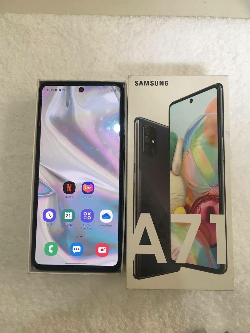 Fresh in box galaxy A71 5G 128gb/6gb ram 4500mAh capacity dual sim 12 months warranty black color call us now.