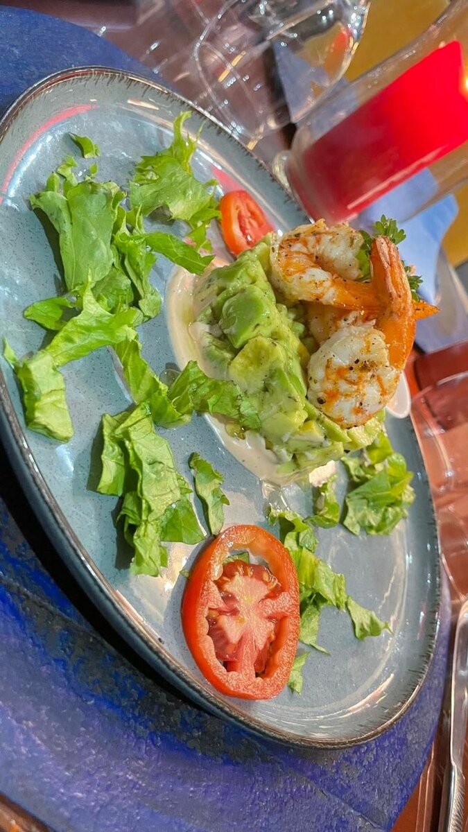 Découvrez notre délicieuse entrée de gambas grillées servies sur un lit d'avocat crémeux et accompagnées de laitue croquante. Parfait pour une soirée élégante ou un dîner romantique.