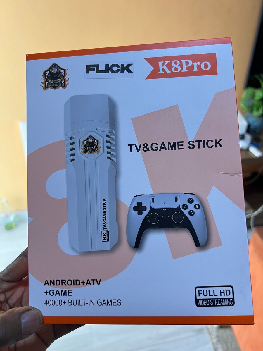 Flick K8 pro Game Console 4K Android TV Stick Classic 40000 Games 64GB HD Retro Video Game Consoles For PS1/GBA Gaming K8PRO. Comes with 2 controllers and remote