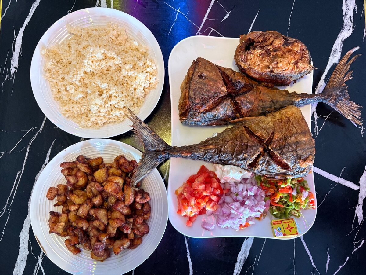 Garba du boss Plusieurs poissons, aloco , Attieké