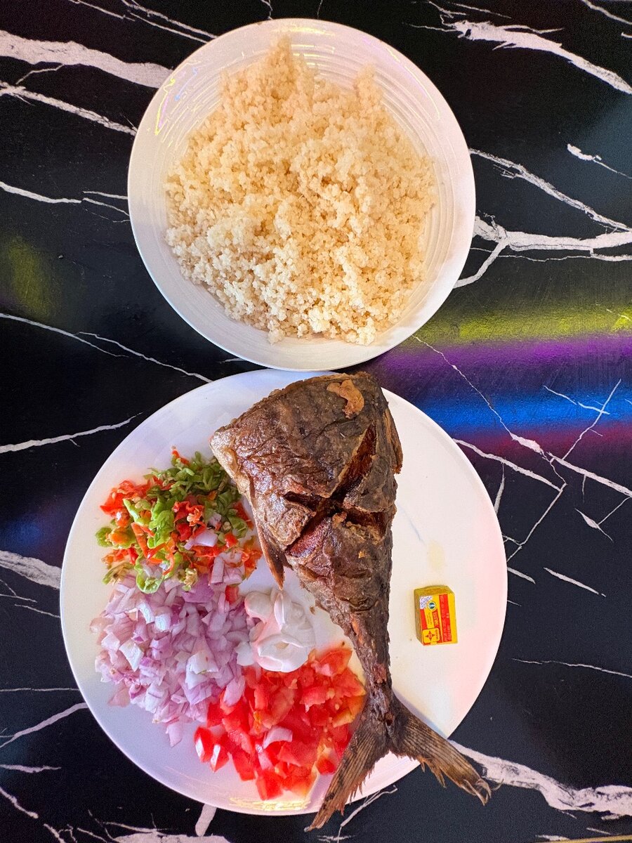 Un plat de Garba Attieke et un délicieux poisson thons fais maison !