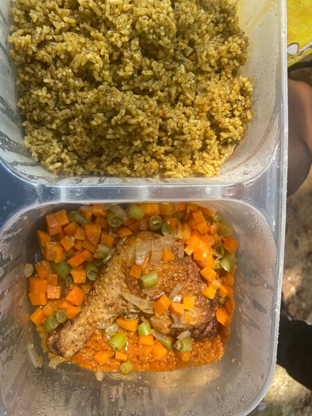 Savourez ce délicieux plat dAttieke accompagné de poisson grillé et de légumes frais.