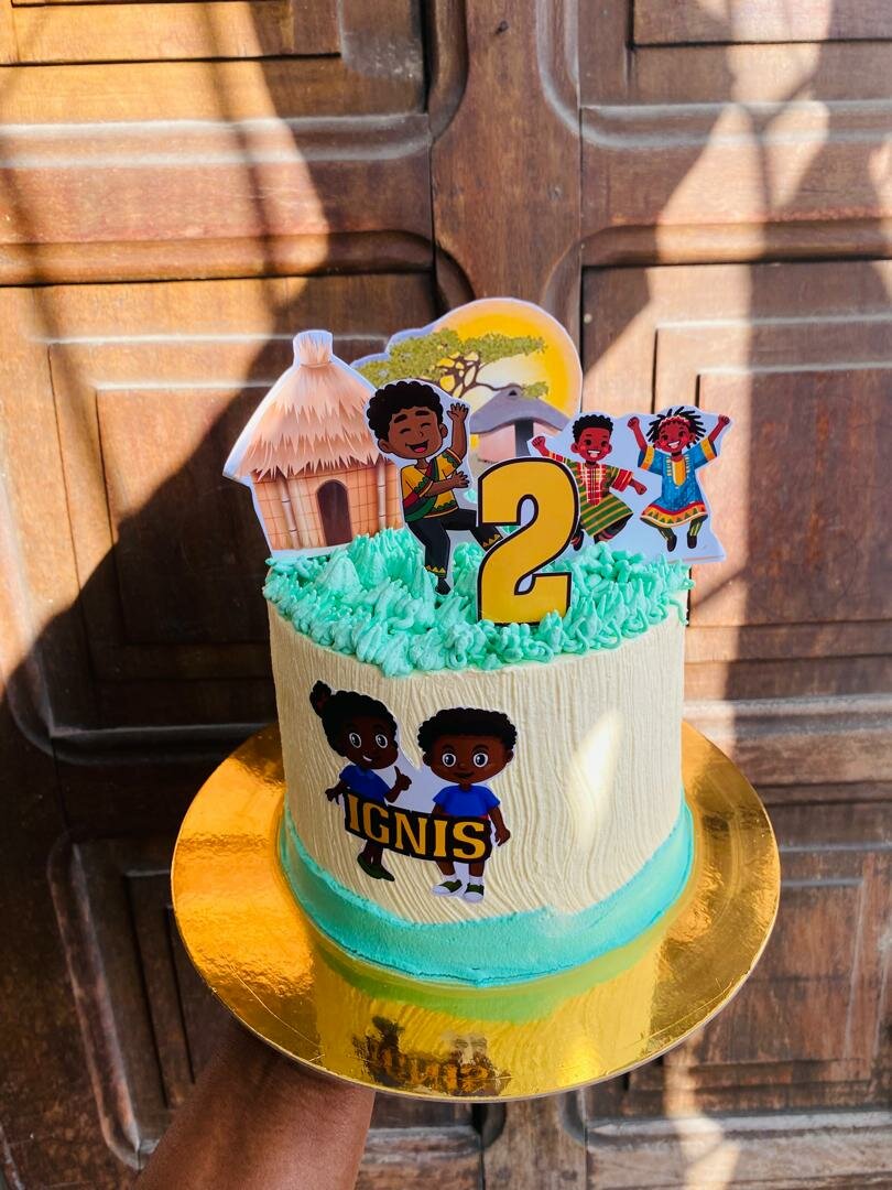 Célébrez avec un gâteau d'anniversaire unique et coloré parfait pour les enfants. Décoré avec des personnages animés et un chiffre 2, il est idéal pour une fête mémorable. Offrez à votre enfant un moment joyeux et savoureux!