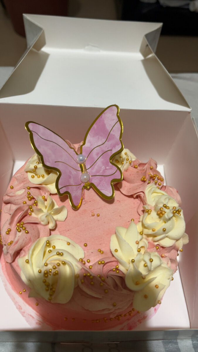 Ce magnifique gâteau rose avec un décor de papillon est parfait pour célébrer des occasions spéciales. Orné de fleurs et de perles dorées comestibles, il allie esthétique et saveurs exquises. Idéal pour les anniversaires ou les fêtes.