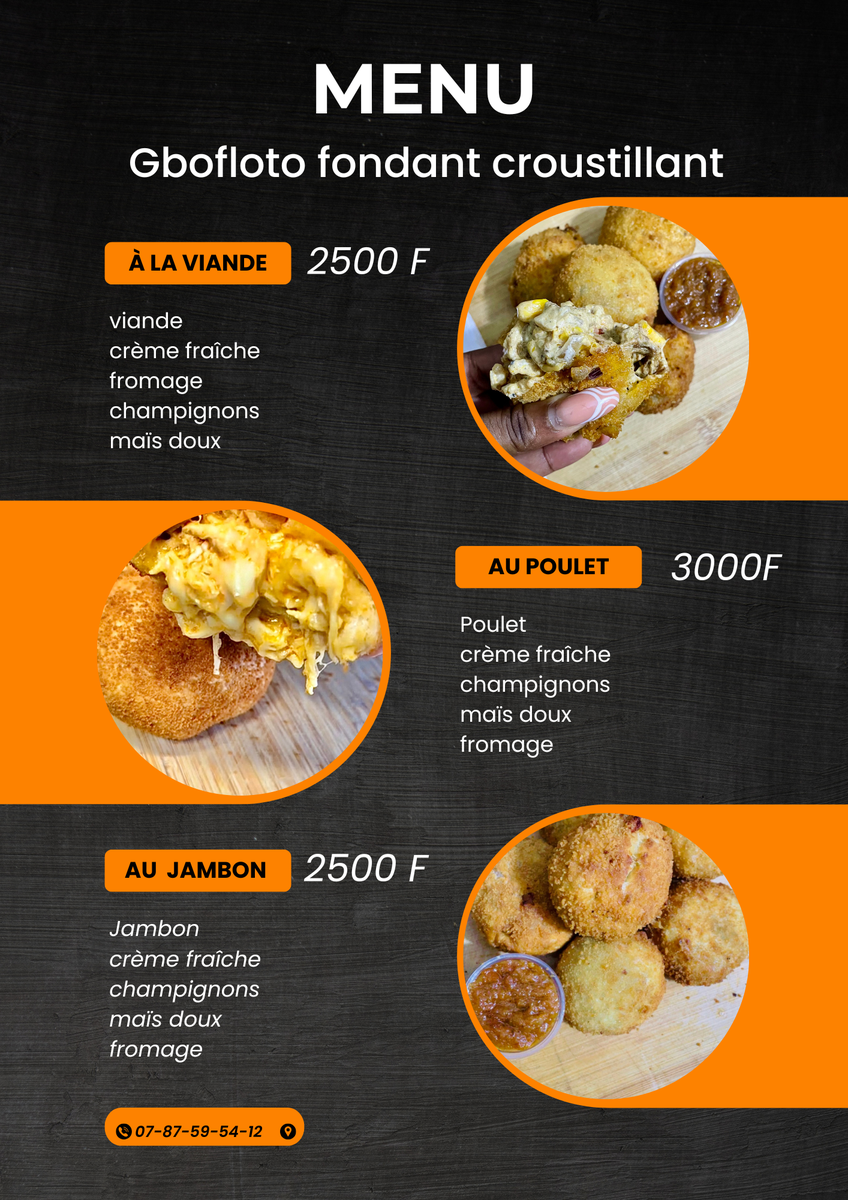 Découvrez le délice croustillant du Gbofloto fondant, farci au choix avec viande, poulet ou jambon, accompagné de crème fraîche, fromage, champignons et maïs doux. Idéal pour les amateurs de snacks savoureux, servi avec une sauce épicée pour une touche piquante. Parfait pour un repas rapide ou une collation gourmande!