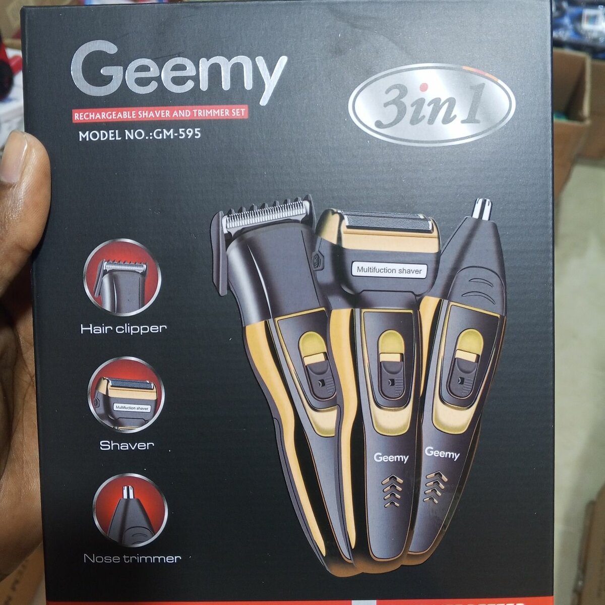 Découvrez la Geemy Tondeuse Électrique 3-en-1, modèle GM-595, l'outil parfait pour la coupe de cheveux, le rasage et la taille du nez. Idéale pour un usage à domicile, elle offre une performance professionnelle.