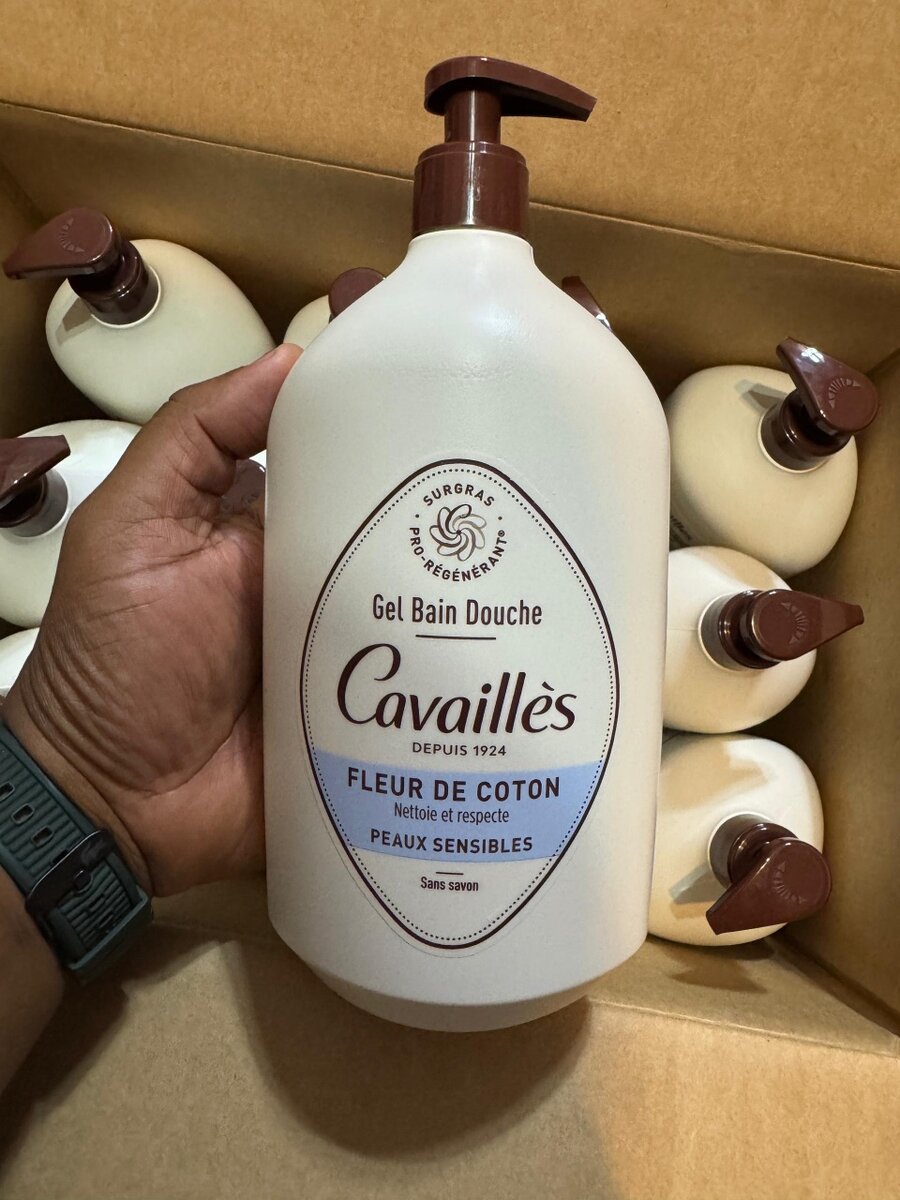 Gel Bain Douche Fleur de coton - 1L Surgras actif Protège et nourrit Sans savon, sans paraben Peaux sensibles Hypoallergénique Testé cliniquement par les dermatologues