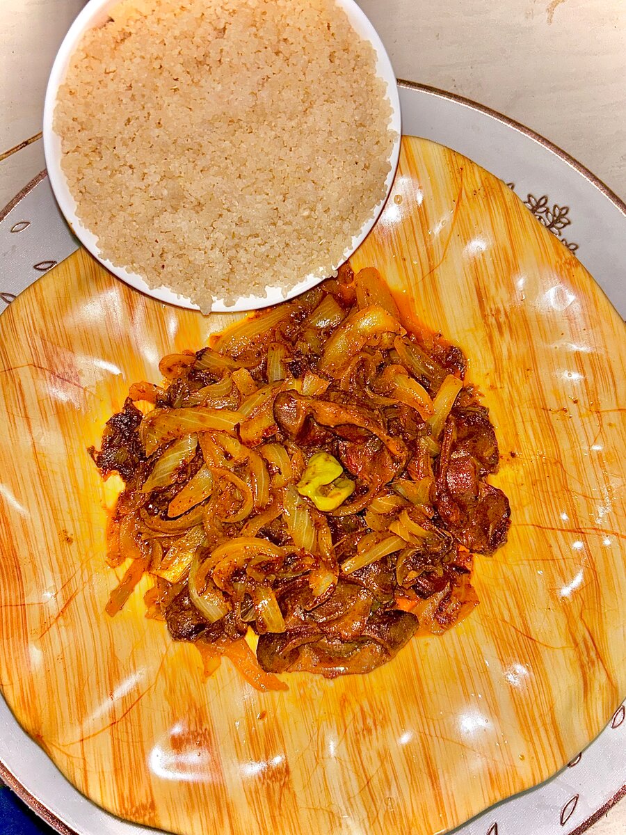 Saucisse de porc avec attiéké