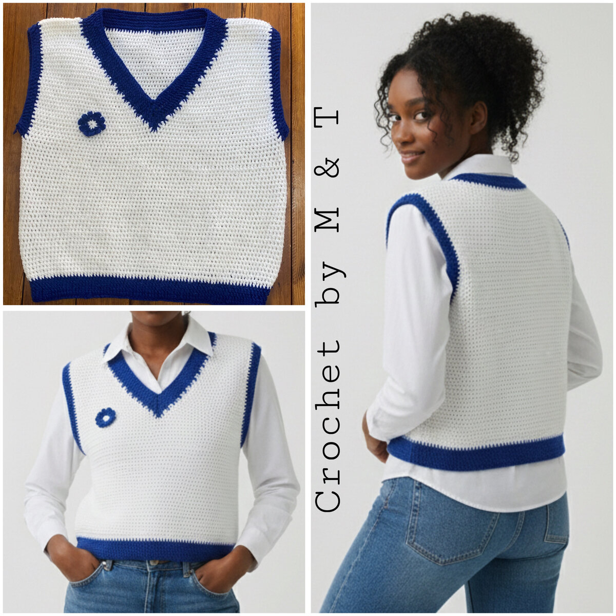 Ce gilet bleu et blanc irait parfaitement sur vos T-shirts et chemises. Confortable et adorable.<3