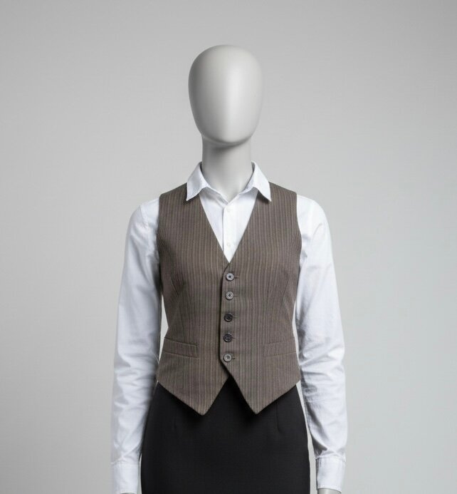 Optez pour ce gilet élégant et raffiné qui apporte une touche sophistiquée à votre tenue professionnelle. Fabriqué à partir de matériaux durables, ce gilet rayé se marie parfaitement avec une chemise blanche pour un look chic. Idéal pour le bureau ou des occasions formelles, il offre confort et style. Faites sensation au travail avec ce gilet incontournable.