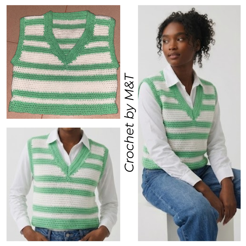 Gilet Vert et Blanc en Crochet