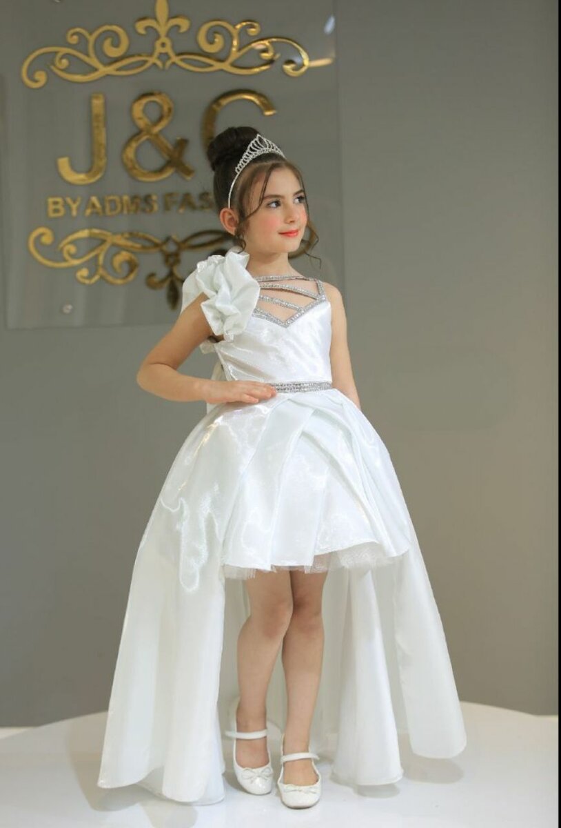 Girls short front silvery gown is a luxury dress It ranges from 3-6years The gown comes with a crown