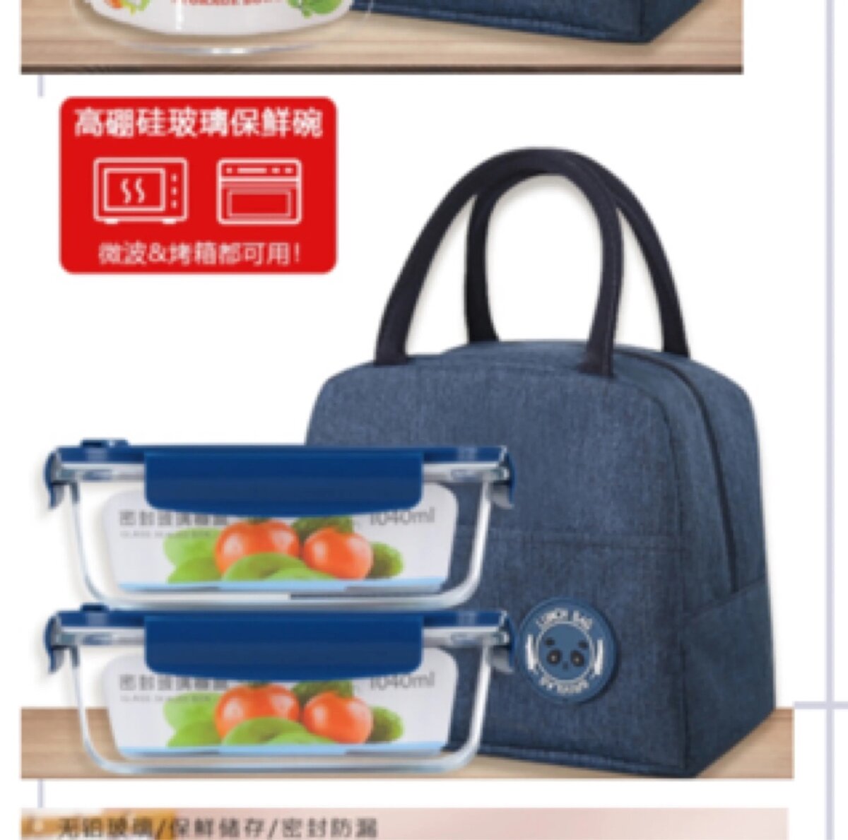 2 sets of glass bowls with lunch bag