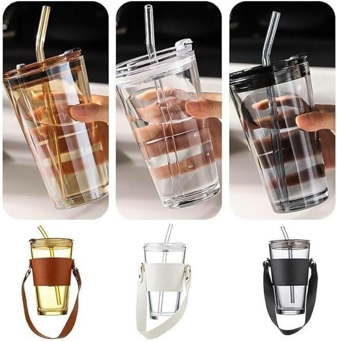 450ml Glass Cup with straw Avaliable in Black and Brown