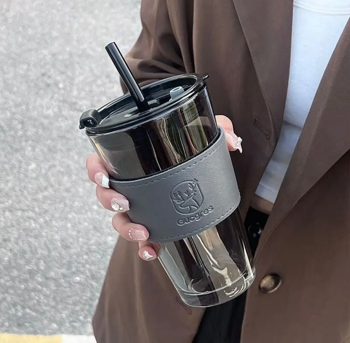 Glass Tumbler with straw