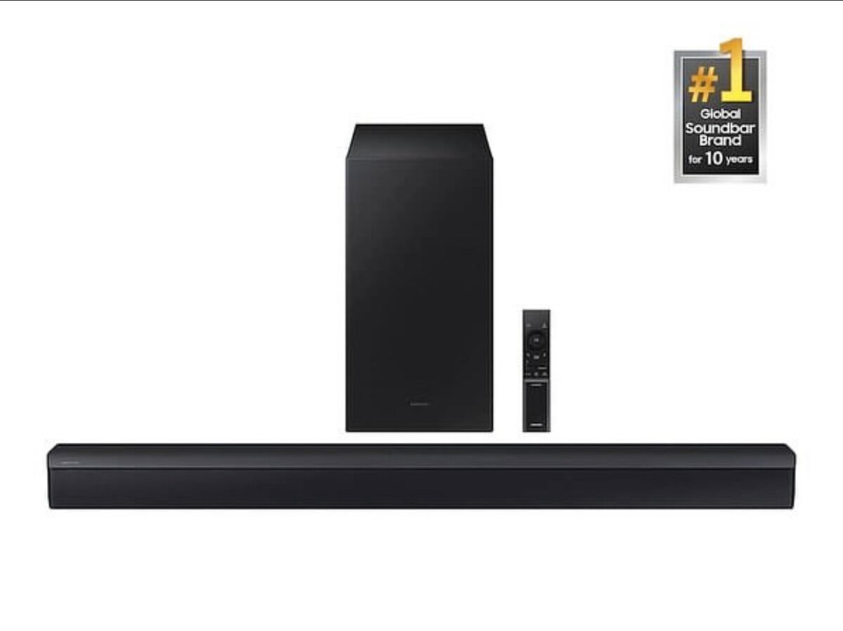 Global sound bar Model HW C450 Sound bar Subwoofer Optical cable Mall mount kit Remote control with battery