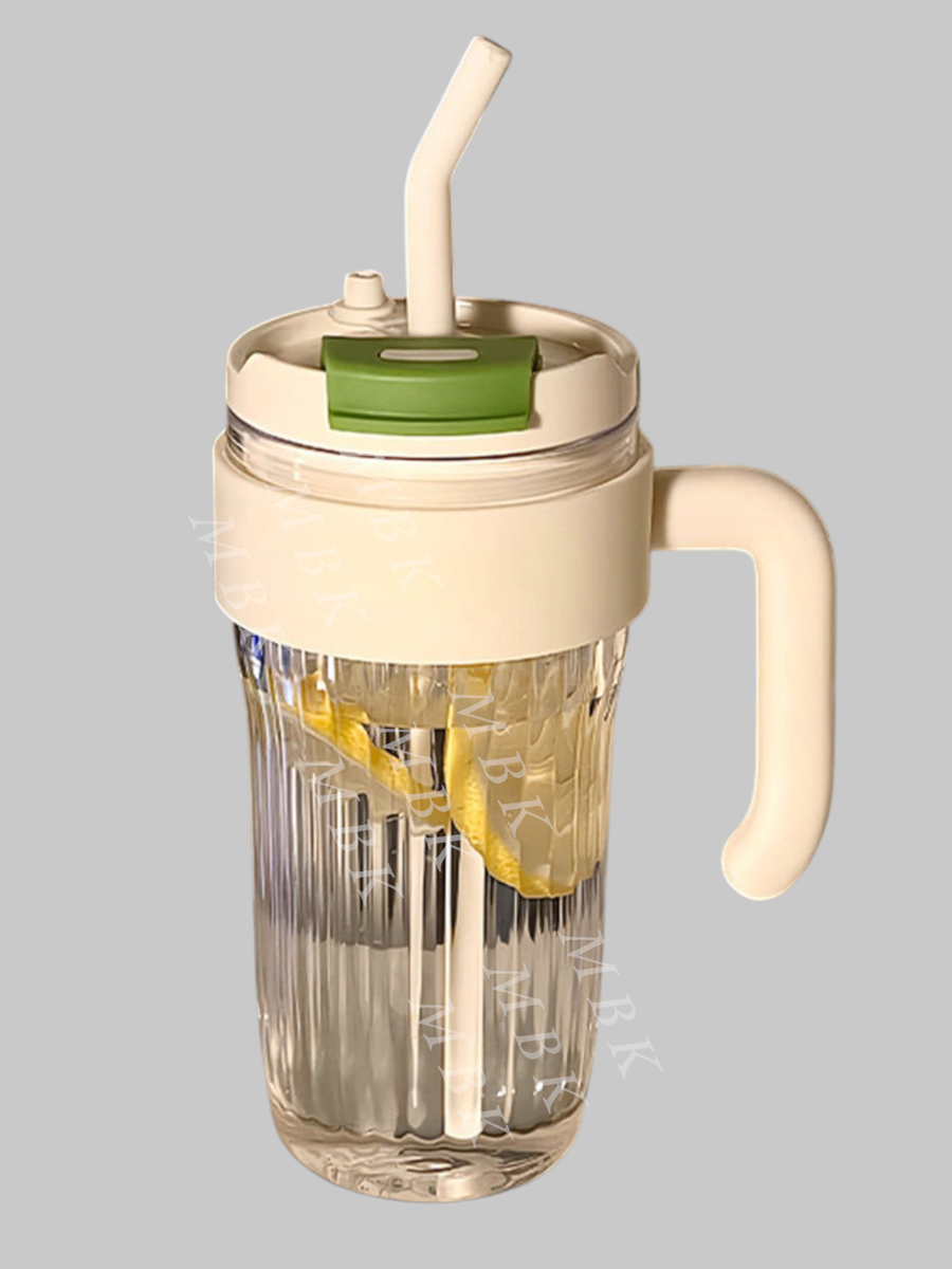Idéal pour les boissons fraîches en déplacement, ce gobelet avec paille intégrée et anse offre une hydratation pratique. Parfait pour le bureau, la maison ou le sport, il est facile à transporter.