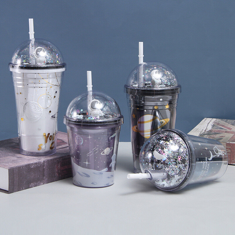 Gobelet en plastique réutilisable avec paille