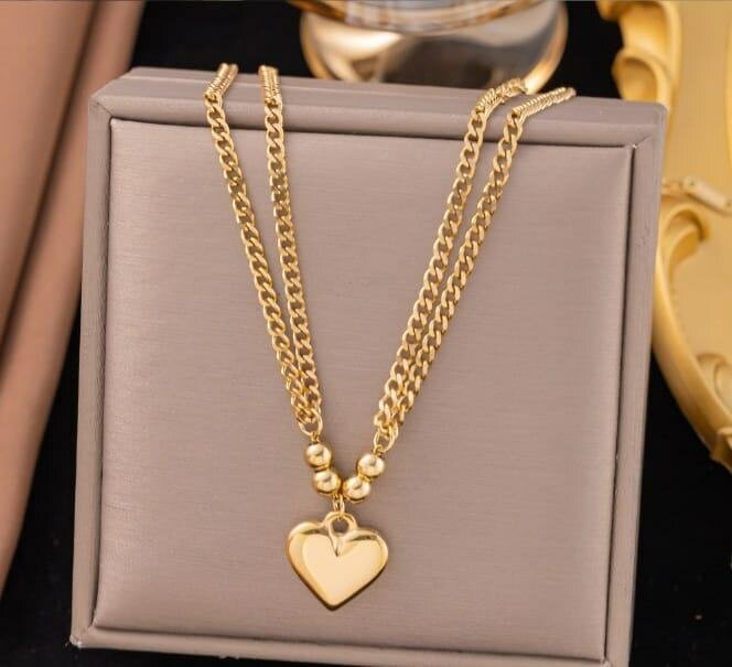 Elegant gold necklace with a heart pendant, perfect for adding a touch of sophistication to any outfit. Ideal for daily wear or special occasions. Crafted with high-quality materials for durability and style.