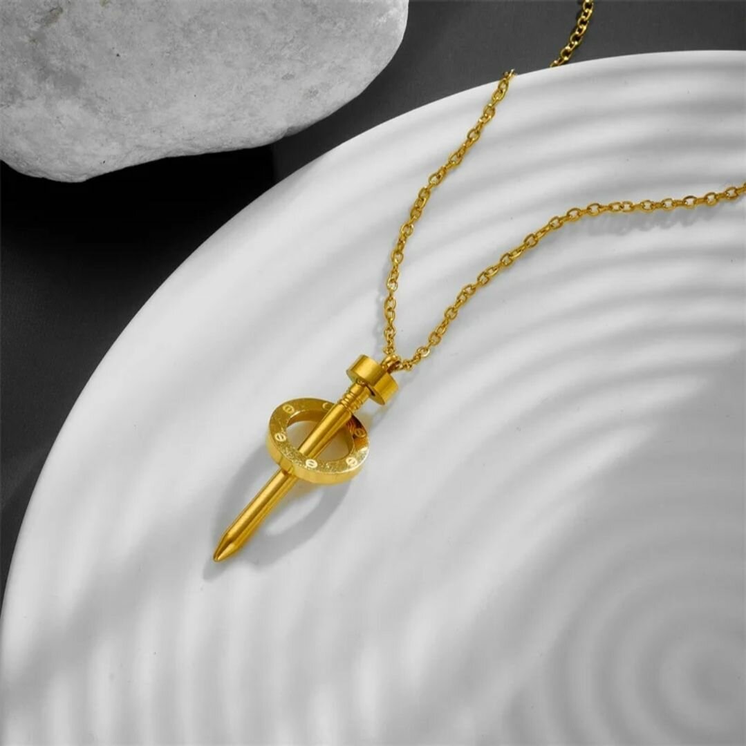 Discover elegance with this gold nail pendant necklace. Perfect for adding a modern touch to any outfit, this accessory combines unique design with timeless style. Ideal for both casual and formal occasions, it's a standout piece for any jewelry collection.