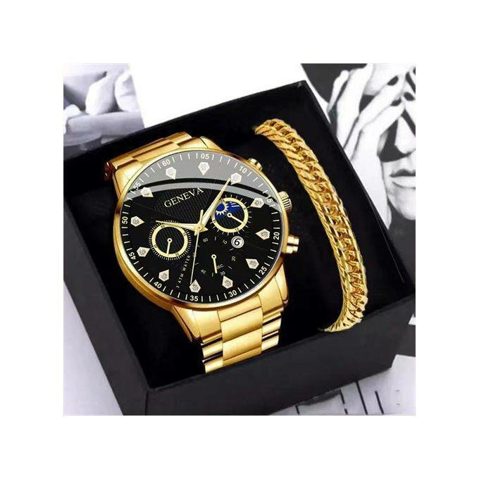 Golden Men's watch with bracelet
