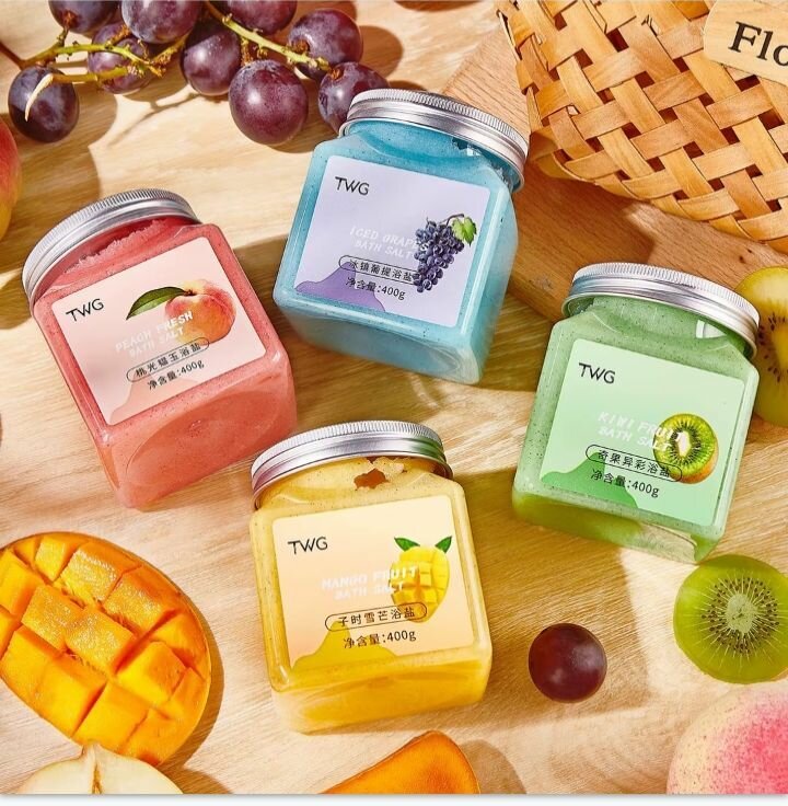 Découvrez l'exfoliant corporel TWG aux extraits de fruits riches. Parfait pour une peau douce et hydratée. Disponible en pêche, raisin, kiwi, et mangue. Idéal pour un soin spa à domicile.