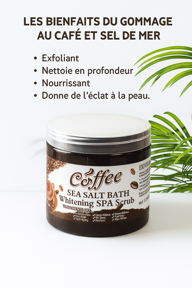 Découvrez un gommage luxueux au café et sel de mer. Exfolie en profondeur, nourrit et illumine votre peau. Idéal pour un spa à domicile et pour tous types de peau.