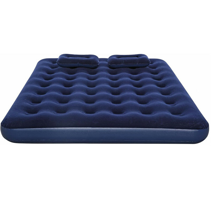 Matelas gonflable double avec oreillers intégrés, parfait pour le camping ou les invités. Conception durable et confortable. Facile à gonfler et à ranger.