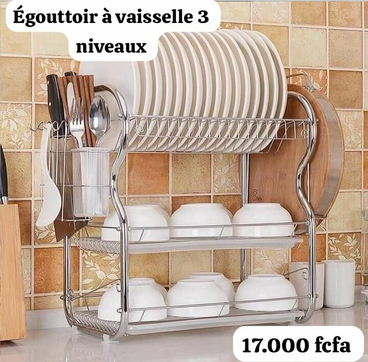 Optimisez votre espace de cuisine avec cet égouttoir à vaisselle à 3 niveaux. Parfait pour organiser vos assiettes, bols et couverts. Fabriqué en acier inoxydable, il est durable et facile à nettoyer. Idéal pour les familles et les amateurs de cuisine efficaces!