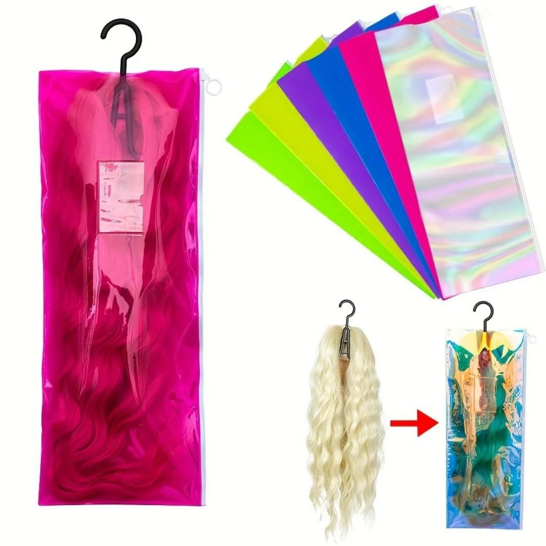 Optez pour notre grand sac à perruque en PVC, parfait pour protéger et organiser vos perruques contre les dommages et la poussière. Son design transparent permet une visibilité facile, avec un crochet pratique pour un rangement suspendu.