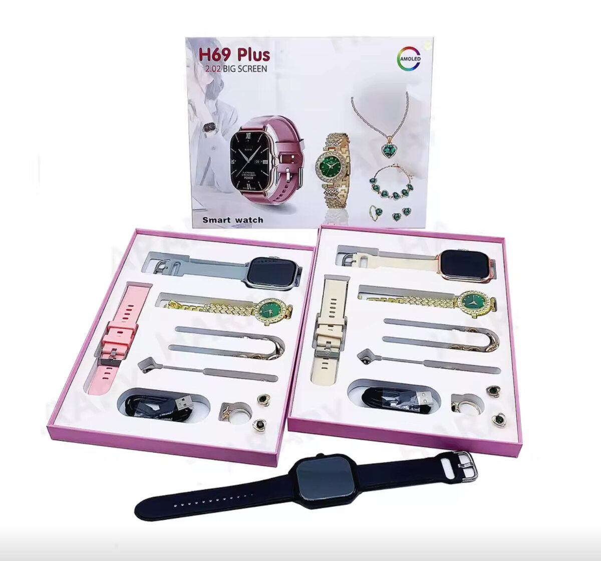 Discover the H69 Plus Smartwatch set—featuring a 2.02-inch AMOLED display for a vivid experience. Elegantly paired with matching jewelry, this set is perfect for fashion-forward individuals. Ideal for casual and formal settings, it combines technology and style seamlessly. Elevate your look with this complete accessory bundle.