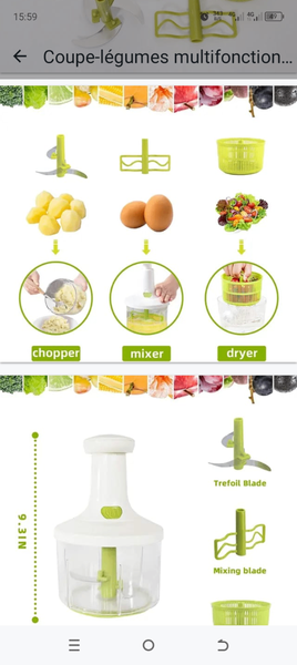 Découvrez notre hachoir multifonction électrique, idéal pour faciliter votre cuisine quotidienne. Avec ses différentes lames et contenants, il s'adapte à tous vos besoins : hacher, mélanger, broyer. Parfait pour les légumes, les fruits et même la viande. Compact et efficace, c'est un incontournable pour votre cuisine.