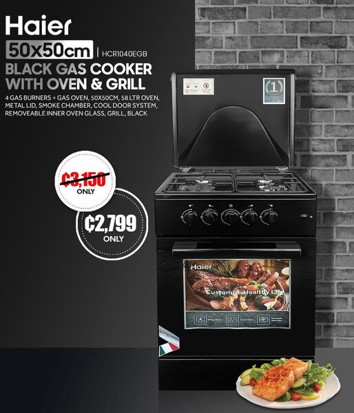 HAIER [50x50cm HCR1040EGB BLACK GAS COOKER WITH OVEN & GRILL