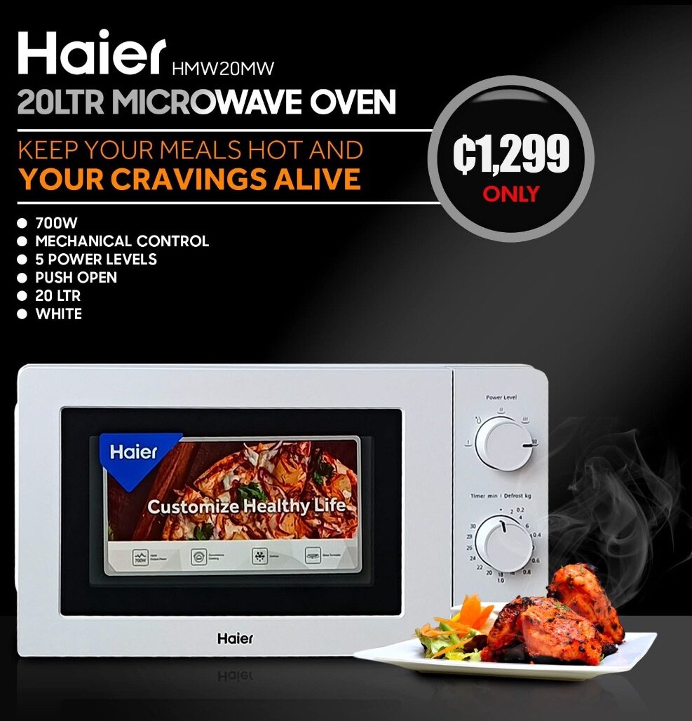 700W MECHANICAL CONTROL 5 POWER LEVELS PUSH OPEN 20 LTR WHITE C1,299 ONLY Power Level Haier