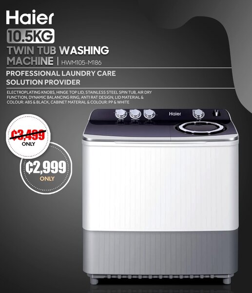 HAIER [ 10.5KG TWIN TUB WASHING MACHINE | HWM105-M186 ]