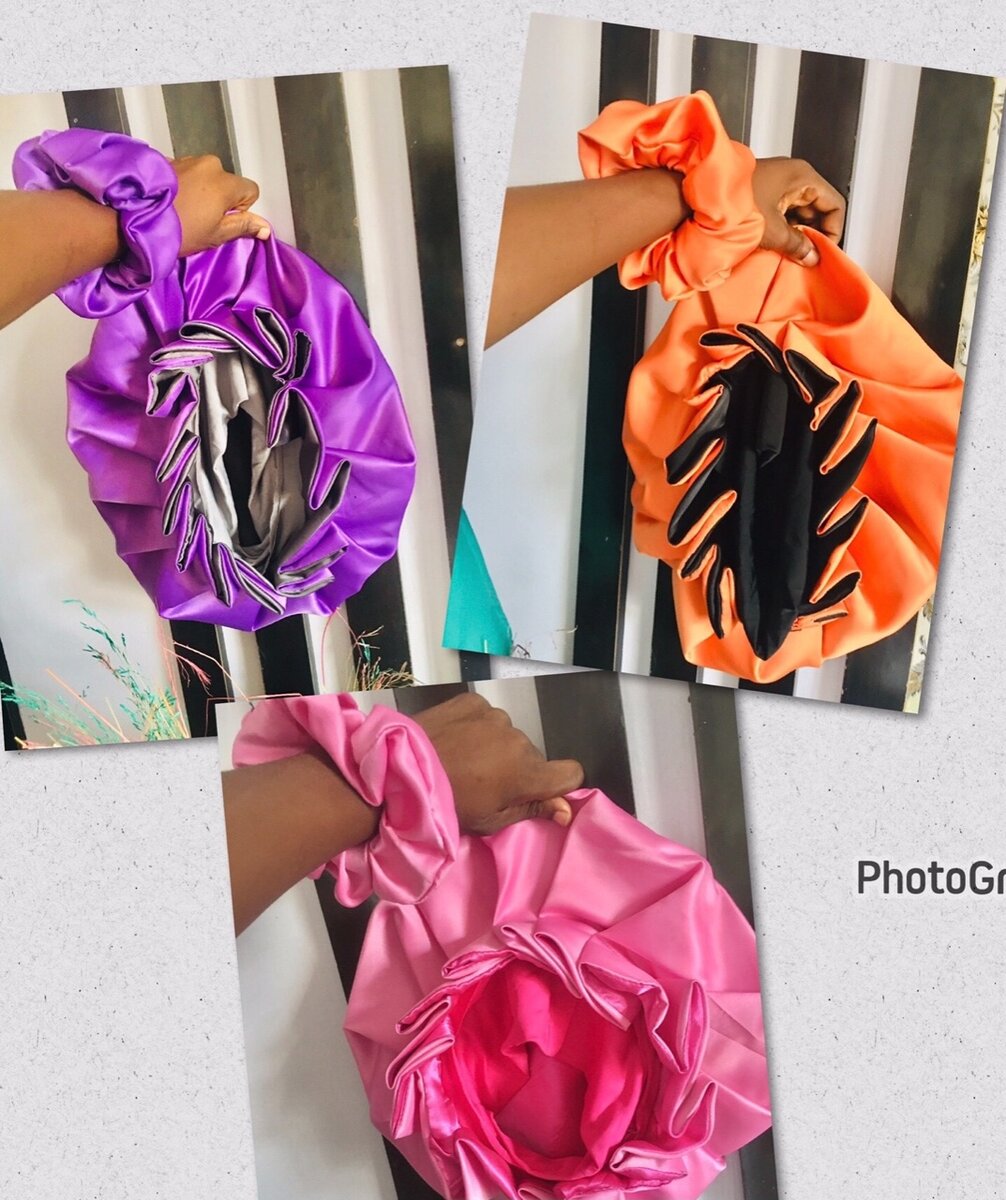 3 in 1 hair bonnet with scrunchies