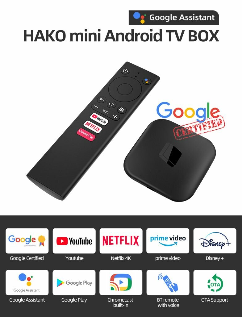 La Hakomini Box est une box Android TV un petit appareil que tu branches à ta télévision via HDMI pour la transformer en smart TV. Elle permet de regarder des vidéos, installer des applications, naviguer sur internet et plus encore directement sur votre télé. La Hakomini Box te permet de Regarder des films et séries en streaming (YouTube, Netflix, Prime Video); Installer et utiliser des applications Android (jeux, réseaux sociaux, navigateurs);Voir des vidéos en qualité 4K Ultra HD.