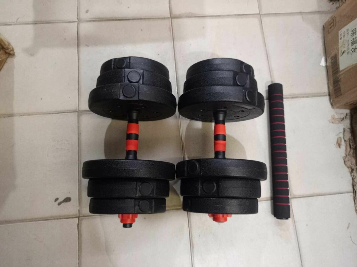 Ensemble d'haltères ajustables idéal pour les séances de musculation à domicile. Convertissez facilement en barre pour divers exercices. Parfait pour renforcer vos muscles de manière efficace et pratique.