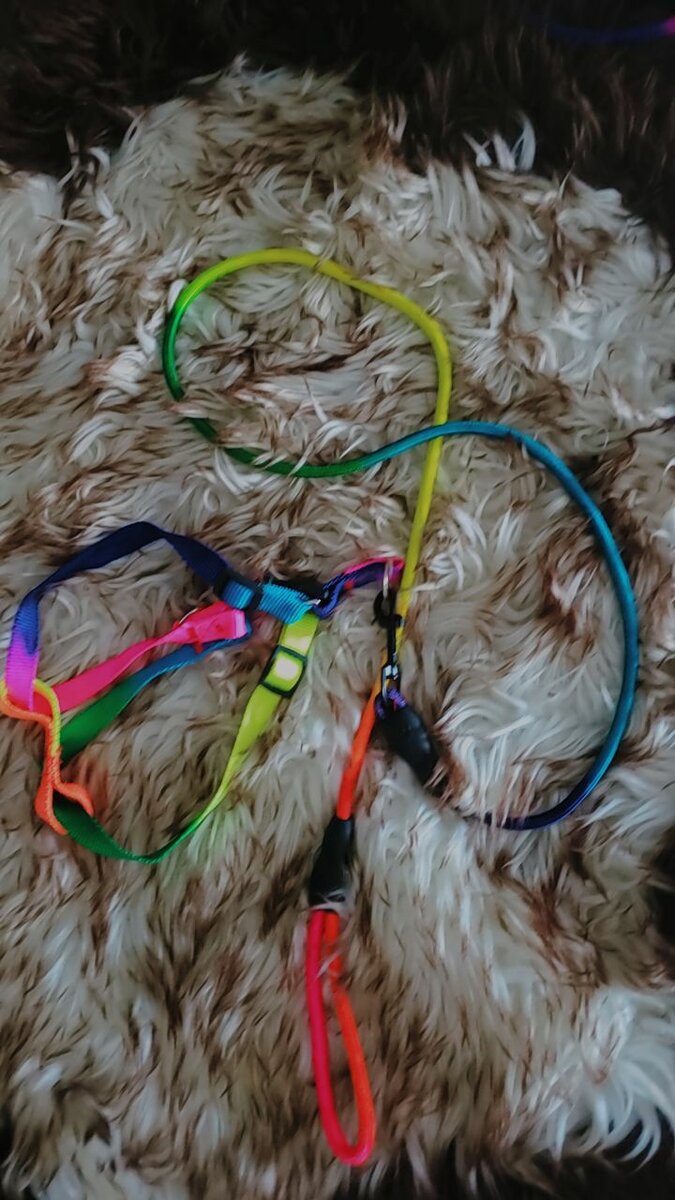 Optez pour ce harnais et laisse colorés, parfaitement adaptés pour une promenade pleine de style avec votre chien. Conçu pour le confort et la sécurité, il fait resplendir votre compagnon à quatre pattes.