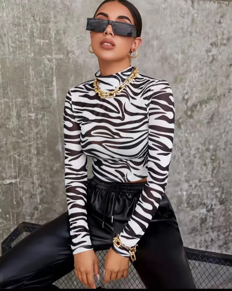 Adoptez un style audacieux avec ce haut à motifs zébrés. Parfait pour une sortie en ville ou une réunion entre amis, il ajoutera une touche unique à votre tenue. Sa coupe ajustée et son col montant assurent un look chic et moderne. Associez-le à un pantalon noir pour un contraste saisissant.
