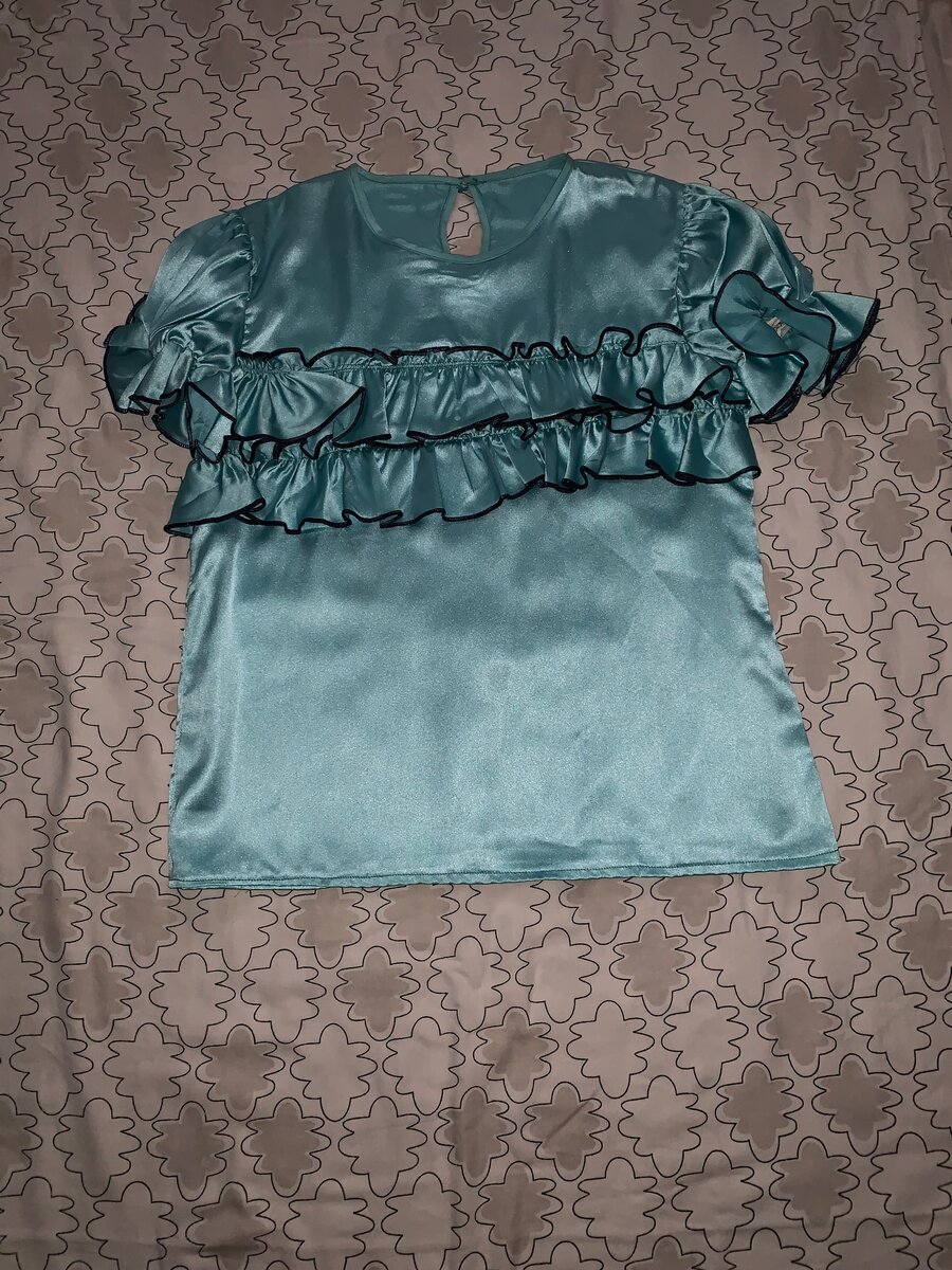 Ajoutez une touche d'élégance avec ce haut en satin doté de volants. Idéale pour des occasions spéciales ou un look sophistiqué au quotidien. Disponible dans une teinte douce et attrayante, il s'associe parfaitement avec des jupes ou des pantalons pour un ensemble chic et féminin.