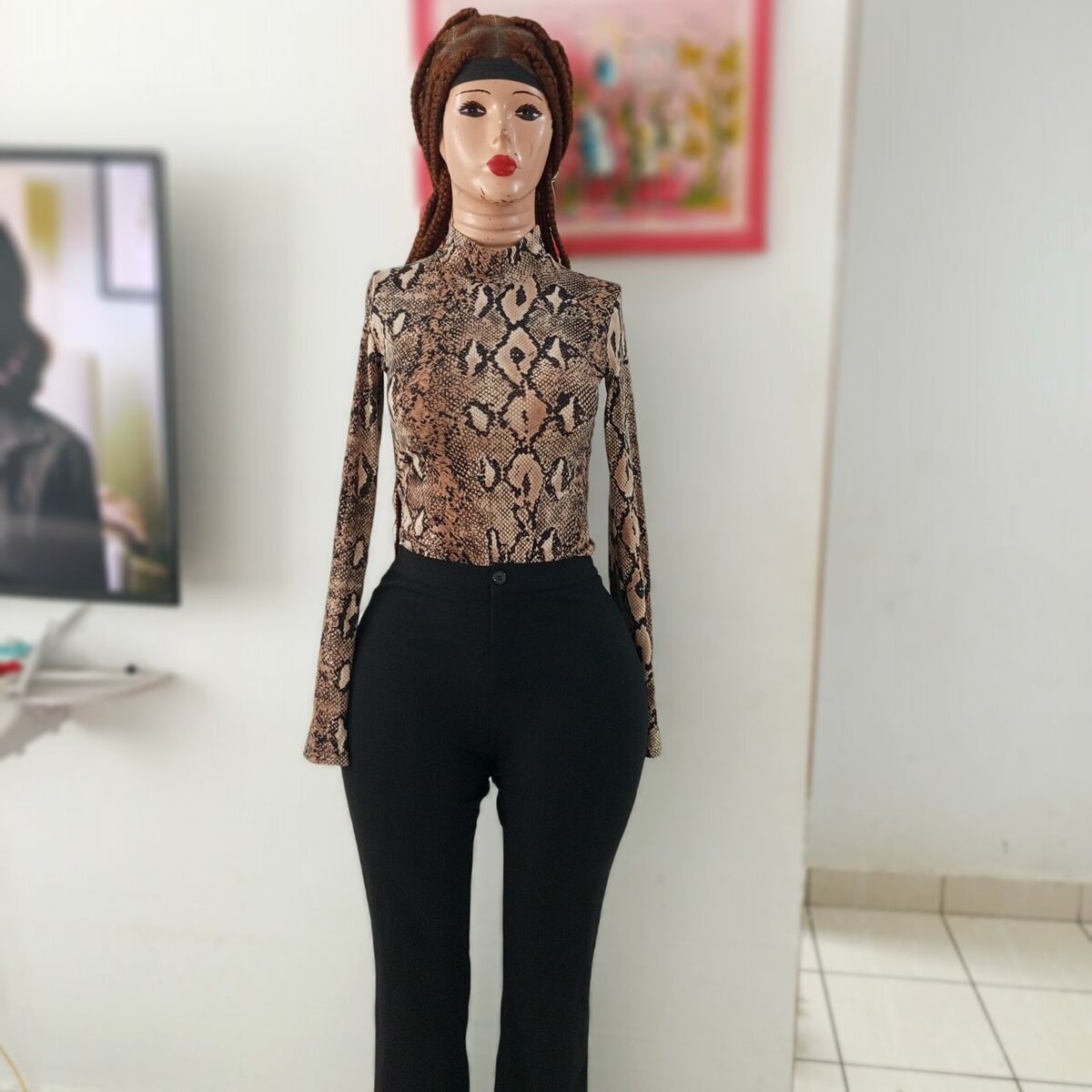 Ce haut à imprimé serpent est parfait pour un look élégant et moderne. Fabriqué avec des matériaux de haute qualité, il apporte confort et style à votre garde-robe. Idéal pour des sorties, il s'accorde facilement avec un pantalon ou une jupe pour un ensemble chic. Ajoutez une touche de sophistication à vos tenues quotidiennes avec ce haut tendance.