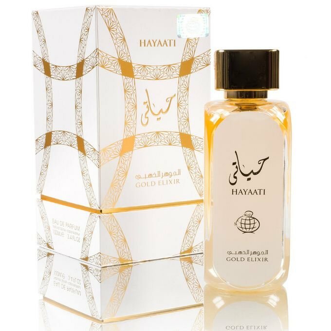 Hayaati Gold Elixir by Lattafa Perfumes is a fragrance for women and men. Top notes are Bergamot, Grapefruit and Cassis; middle notes are Leather, Peach and Saffron; base notes are Vanilla, Amber, Musk and Vetiver.