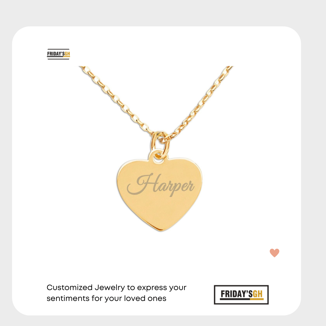 Simple dainty heart necklace you can engrave your name, initials or emojis.