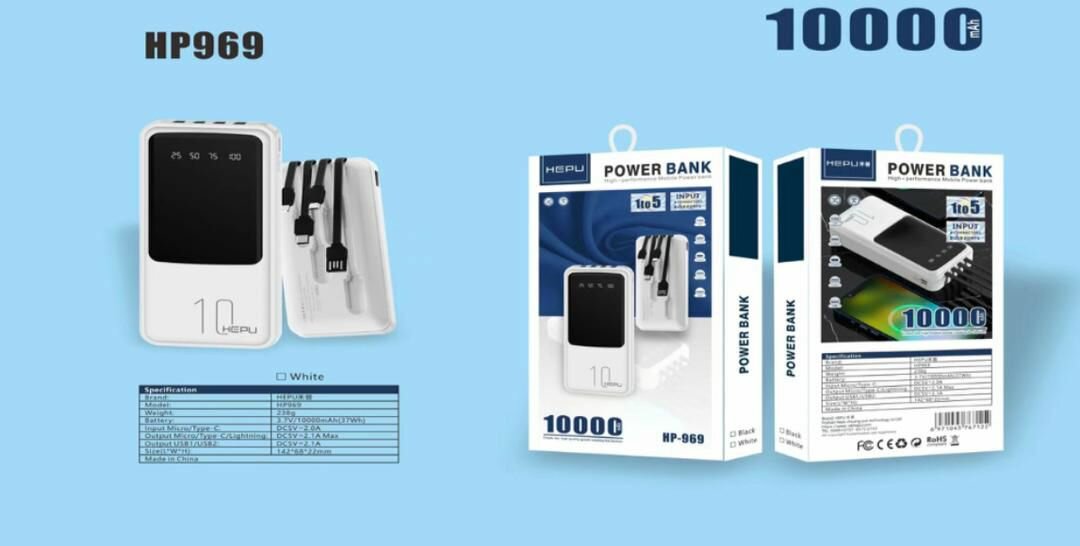 Rechargez vos appareils n'importe où avec la batterie externe Hepu HP969. Avec sa capacité de 10000mAh, elle est idéale pour vos déplacements. Compatible avec divers appareils, elle offre une recharge rapide et efficace. Compacte et élégante, c'est un accessoire indispensable pour tous les voyageurs et utilisateurs mobiles.