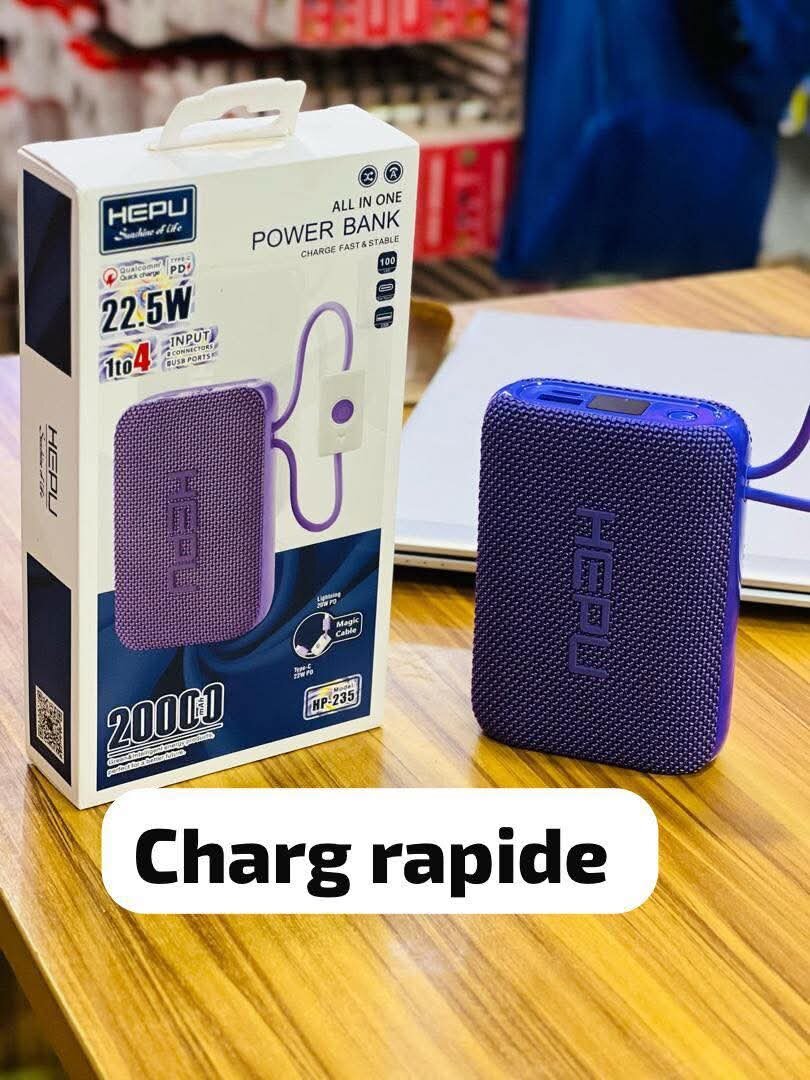 Découvrez le Hepu Power Bank 20000mAh avec charge rapide 22.5W, idéal pour recharger vos appareils rapidement et efficacement. Parfait pour les voyages ou l'utilisation quotidienne, il supporte jusqu'à quatre appareils simultanément. Léger et compact, il est votre compagnon de confiance pour une énergie ininterrompue où que vous soyez.