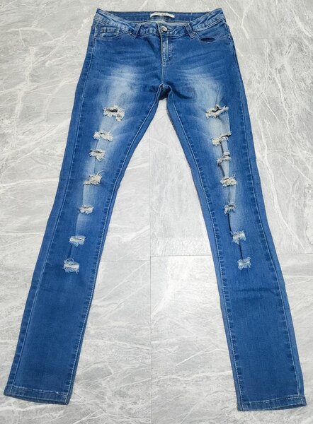 Women's Skinny Ripped Distress Jeans(Thrift)