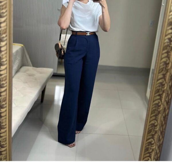 Upgrade your wardrobe with these elegant high-waist wide-leg trousers. Perfect for both casual and formal occasions, these pants offer a flattering fit and exceptional comfort. Made from high-quality fabric, they feature a stylish belt for a modern touch. Ideal for pairing with blouses, jackets, or casual tops. Perfect for work, meetings, or a night out. Available in various sizes to suit your style.