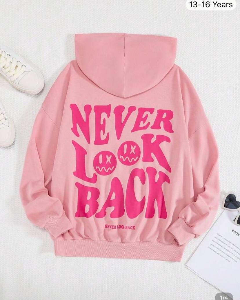 Découvrez notre hoodie tendance pour ado avec l'inscription audacieuse "Never Look Back". Confortable et stylé, il est idéal pour les jeunes de 13-16 ans. Parfait pour un look casual et sportif.